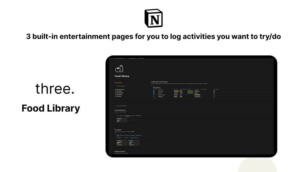 • 3 Built-in libraries (Show, Food & Activity Library) to store/search for your entertainment activities